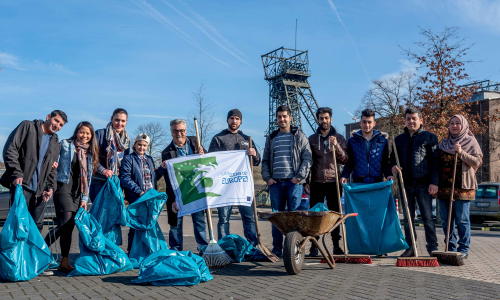 Bild: Auch Flüchtlinge sorgten rund um die Einrichtung AV 1/2 in Marl-Hüls für eine saubere Umgebung. Foto: Deinl