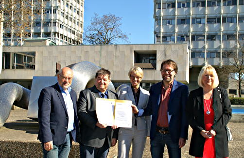 Bild: Freuen sich gemeinsam über die Finanzspritze vom Land: (v.l.n.r.) Karl-Heinz Dargel (Vorsitzender vom Ausschuss für Kultur und Weiterbildung), Bürgermeister Werner Arndt, Regierungsvizepräsidentin Dorothee Feller, Museumsdirektor Georg Elben und Elke Muzyczka.