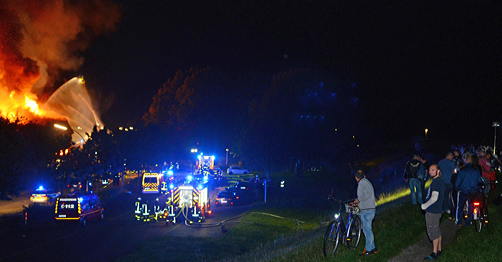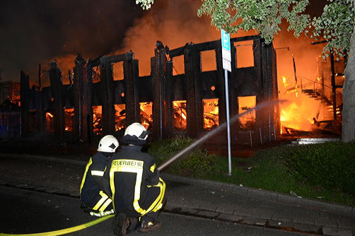 Löschzüge aus dem gesamten Stadtgebiet fuhren auf die Halbinsel Maria Lindenhof, letztlich dürften ungefähr 100 Einsatzkräfte vor Ort gewesen sein. „Binnen zehn Minuten“, so Terwellen, „brannte der etwa 1.200 Quadratmeter große Fitnessclub, eine Holzkonstruktion, in voller Ausdehnung. Da war nichts mehr zu machen“.