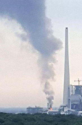 Bild links: Nach der Explosion stieg eine schwarze Rauchwolke über dem Chemiepark auf.