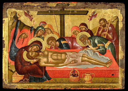 Bild: Die Beweinung Christi. Kreta, zweite Hälfte 15. Jahrhundert. Eitempera auf Holz, 47 x 66 cm.