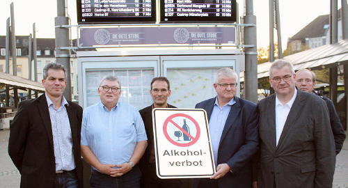 • Das Alkoholverbot ist in Kraft getreten. Dazu wurden an 16 Standorten am Busbahnhof entsprechende Schilder aufgestellt. Das Alkoholverbot wird kontrolliert.