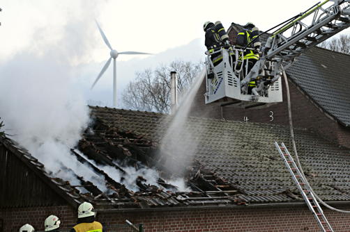 Als die ersten Einheiten an dem landwirtschaftlichen Betrieb an der Halterner Straße eintrafen, brannte ein Teil der Scheune, in dem eine Werkstatt untergebracht war, im Bereich des Daches und sorgte für starke Rauchentwicklung.