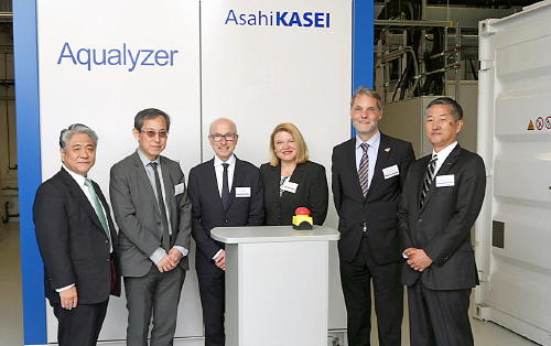 Bild: Die Firma Asahi Kasei Europe hat im Wasserstoff-Kompetenz-Zentrum h2herten in Herten gemeinsam mit Bürgermeister Fred Toplak (3.v.l.) ein Demonstrationsprojekt zur Produktion von grünem Wasserstoff gestartet.
