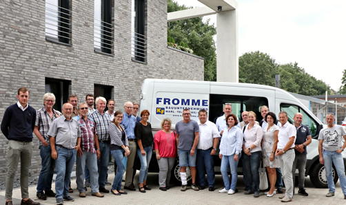 Zu den Kunden zählen sowohl private als auch öffentliche Auftraggeber. Aktuell ist die Unternehmensgruppe von der Stadt Marl mit der Erweiterung der Martin-Luther-King Schule und dem Neubau der Kindertagesstätte an der Max-Reger-Straße beauftragt. „Die Firma Fromme ist seit vielen Jahren ein zuverlässiger Partner bei der Umsetzung städtischer Bauprojekte. Daher freut es mich ganz besonders, dass wir das neugestaltete Gelände jetzt erkunden konnten“, fasste Bürgermeister Werner Arndt den Sommerbesuch zusammen. Der Stadtplanungsausschuss ist unter anderem für die Wirtschaftsförderung zuständig und nutzt jährlich die politische Sommerpause, um Marler Unternehmen näher kennenzulernen.