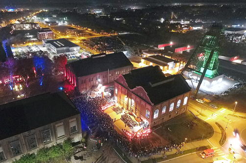 Hunderte von Gästen feierten in Dorsten den Abschied von der Steinkohle. Nach einer Andacht in der Lohnhalle zogen Schützenkapellen und hunderte Feuerwehrleute vor die Maschinenhalle, wo in Reden die Tradition und Geschichte des Bergbaus beleuchtet wurden. Mit der Feier wollten Stadt und Bürgerschaft „Danke“ sagen – dem Bergbau ebenso wie den Menschen, die hier über viele Generationen Arbeit und in Dorsten eine Heimat gefunden haben, die Familien gegründet, die Stadt vergrößert und bereichert haben. Foto: Bludau