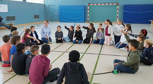 Oberärztin Dr. med. Petra Bücking und Eun-Mi Boyn vom St. Elisabeth-Hospital in Herten besuchte die Klasse 4a der Grundschule Herten-Mitte. Die Kinder erfuhren viel zum Thema „gesunde Füße“, meisterten spielerisch einen Fuß-Parcours, tanzten gemeinsam und erhielten zum Schluss eine Urkunde mit eigenem Fußabdruck und eine Broschüre für die Eltern.