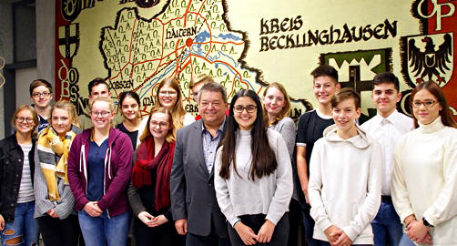 Bild: Die Digitalisierung der Schulen war eines von zahlreichen schulischen Themen, über das sich die Schülersprecherinnen und Schülersprecher der Marler Schulen mit Bürgermeister Werner Arndt im Rathaus austauschten. Foto: Stadt Marl