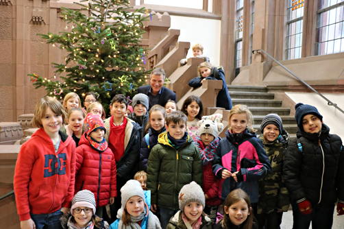 Recklinghausen. Nach zwei Jahren Rathaussanierung fand wieder das traditionelle Weihnachtsbaumschmücken mit Grundschülern und Bürgermeister Christoph Tesche im Foyer des Rathauses statt.