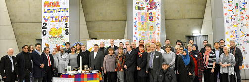 Bild: Vertreter aus Gemeinden, von Vereinen, Gruppen und der Stadtverwaltung sowie Stadtplakettenträger, Unterstützer und Förderer des 18. Abrahamsfestes brachten Symbole ihrer Religionen mit. Fotos: Stadt Marl