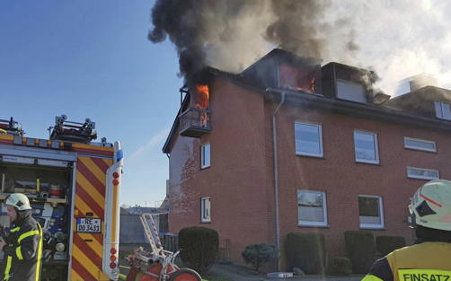 Die Feuerwehr wurde gegen 14.50 Uhr alarmiert. Beim Eintreffen der ersten Kräfte schlugen bereits die Flammen aus den Dachfenstern. Als das Ausmaß des Feuers erkennbar wurde, wurden sofort weitere Einheiten nachalarmiert. Das Feuer wurde sowohl über zwei Drehleitern von außen als auch im Haus selbst von Einsatzkräften unter Atemschutz bekämpft.