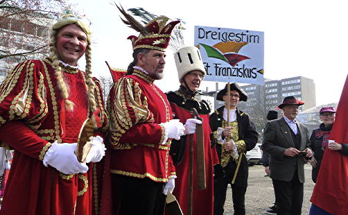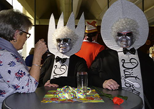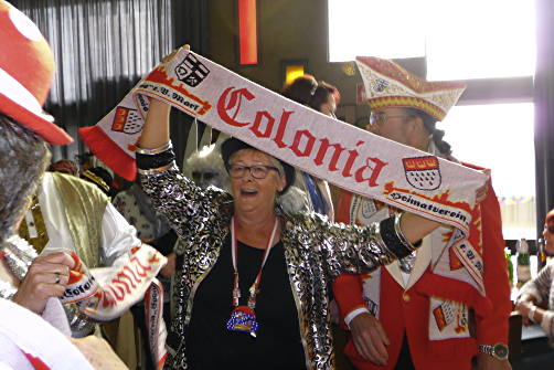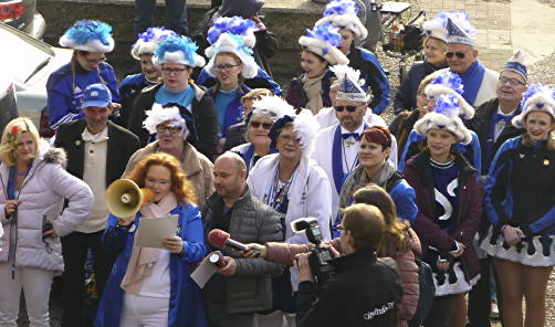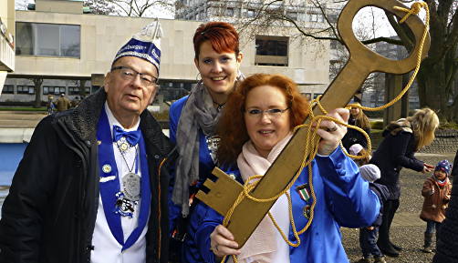 Den Schlüssel zückte er schließlich mit den Worten: „Doch versprecht: Ihr feiert mit uns froh und heiter, zieht aber dann mit eurer Karawane weiter!“ Strahlend nahm die Karnevals-Prinzessin Nicole I. Prinz-Stojek das goldene Stück entgegen und verschaffte damit den Jecken Zugang zu den Verwaltungsräumen.