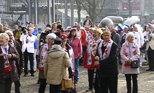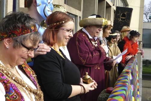 Mit einem lauten „Hallo, salam und helau, was ist das für ein Radau?“, begrüßte „Sultan“ Arndt die närrische Karawane, die vor der Freitreppe des Rathauses versammelt hatte.