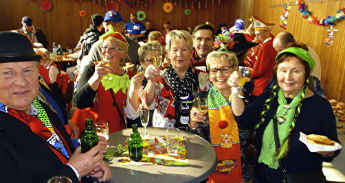 Mit einem dreifach donnernden Helau und Alaaf stürmte die Narrenschar nach der Eroberung des Schlüssels das Rathaus, wo noch zur Stunde feste gefeiert wird.