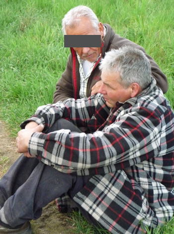 Im wahrsten Sinn des Wortes ist der Landwirt am Boden zerstört, wird von Freunden getröstet.