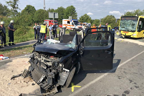 Die Beifahrerin im Pkw musste von der Feuerwehr mit schwerem technischem Gerät befreit werden. Dazu wurden Türen und das Dach des Pkws entfernt. Die Frau und der Mann erlitten schwere Verletzungen. Lebensgefahr kann nicht ausgeschlossen werden. Ein Rettungshubschrauber war angefordert worden, kam jedoch nicht mehr zum Einsatz. Rettungswagen brachten beide in örtliche Krankenhäuser.