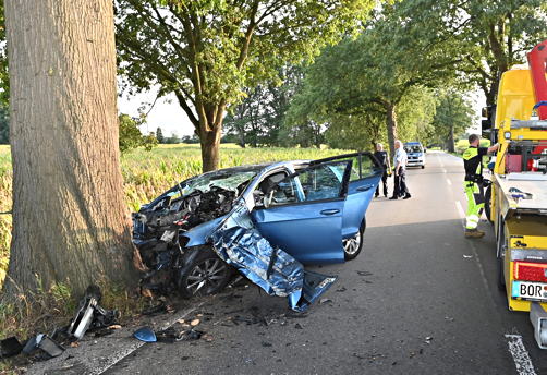 Der Fahrer verstarb trotz sofortiger ärztlicher Versorgung noch vor Ort. Der Wagen wurde völlig zerstört. Foto: Bludau