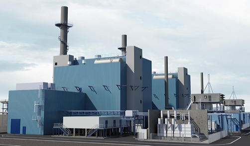 Bild: Modell des neuen Gas- und Dampfturbinenkraftwerks im Chemiepark.