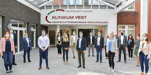 Bild: Die neuen Trainees der Knappschaft Kliniken (erste Reihe) lernten sich bei der Auftaktveranstaltung kennen. Foto: Klinikum Vest