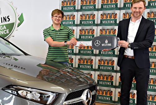Marl. Tim Marcel Dichpol fährt ab sofort sein eigenes Auto, das er bei der Veltins Megachance gewonnen hat! Der Auszubildende aus Marl konnte es gar nicht glauben und wollte sogar zuerst gar nicht ans Telefon gehen, als es klingelte. „Ich dachte erst, das sei ein Fake-Anruf und konnte es gar nicht fassen, aber nach einem Blick auf die Internetseite war ich total glücklich“, sagt der 23-Jährige. Mit einem Kronkorken wurde er zum stolzen Besitzer einer neuen Mercedes-Benz A-Klasse. Die Kronkorken-Aktion 2021 begleitet das Frühlings- und Sommergeschäft der Marke Veltins und überrascht mit 7 Millionen Euro Sofortgewinnen und zusätzlich 25 Mercedes-Benz.