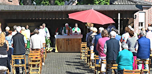Dorsten. Unter freiem Himmel wurde am Sonntag ein Feldgottesdienst der Kirchengemeinde St. Matthäus auf dem Hof Heidermann in Wulfen gefeiert. Der gemeinsame und schon seit Jahren traditionelle Feldgottesdienst der Gemeinden Herz-Jesu (Deuten), St. Barbara (Wulfen-Barkenberg) und St. Matthäus (Wulfen) hielten Pfarrer Martin Peters gemeinsam mit Pastor Thomas aus Indien, der in der Pfarrei tätig ist und Pater Andreas aus Polen, der wegen einer Taufe aus seiner Verwandtschaft aus Polen angereist war.