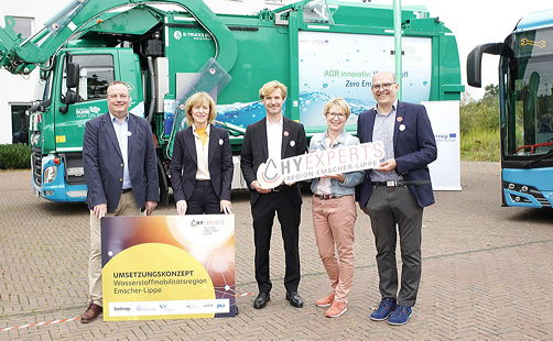 Vest. Die Emscher-Lippe-Region bietet gute Voraussetzungen für eine breite Nutzung von Wasserstoff in der Mobilität und Synergieeffekte mit den anderen Sektoren. So lautet ein Fazit des im Zuge von HyExperts erarbeiteten Umsetzungskonzeptes für eine Wasserstoffmobilitätsregion. Damit die Region von der entstehenden Wertschöpfung und neuen Arbeitsplätzen profitiert, wollen Bottrop, Gelsenkirchen und der Kreis Recklinghausen die Wasserstoffwirtschaft auch künftig aktiv mitgestalten. Das Umsetzungskonzept bietet dafür konkrete Empfehlungen und Handlungsansätze. Beispiele sind ein bereits gestarteter H2-Anwenderkreis und eine intelligente H2-Marktplattform.