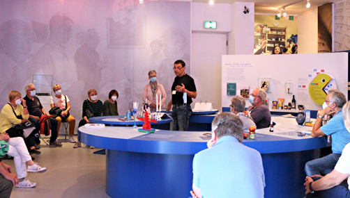 Bild: Vincenzo Velella führt eine Gruppe durch die Dauerausstellung. Foto: Navina Verheyen