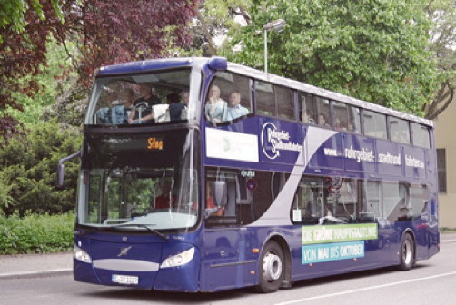 Der Cabrio-Doppelstockbus hat 71 Sitzplätze und verfügt über eine Rampe und einen Rollstuhlplatz. Bei schönem Wetter wird das Dach geöffnet.