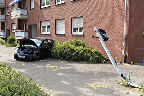Nach dem Zusammenstoß mit der Fußgängerampel schleuderte der Wagen der Dorstenerin mit der linken hinteren Stoßstange gegen eine Hauswand, drehte sich noch einmal und kam schließlich auf dem Gehweg zum Stehen.