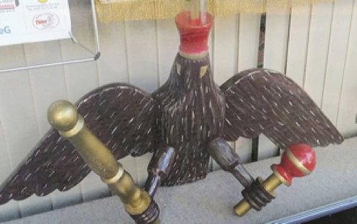 Bild: Wartet geduldig auf sein Ende: Der namenlose Holzadler im Schaufenster von Ingo Lewing.