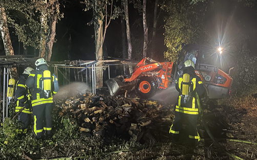 Dorsten. Kurz nach Mitternacht wurden die Kräfte der Feuerwehr Dorsten erneut zu einem Feuer gerufen. Es brannte ein größeres Kaminholzlager im Bereich Kippheide.