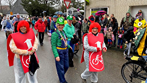 Unter dem Motto “Fahr ma(r)l Rad” liefen auch Marls Baudezernentin Andrea Baudek (li.) und Kulturdezernentin Claudia Schwidrik-Grebe (re.) beim Karnevalsumzug in Sickingmühler mit.
