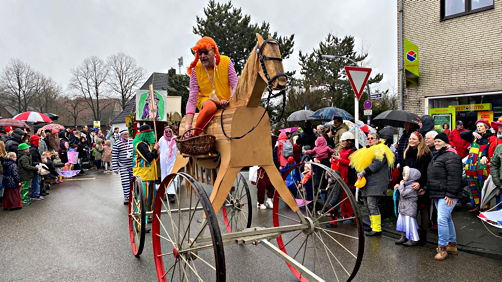 Marl. Es ist ein Highlight der Karneval-Session in Marl: in Sickingmühle zogen am Sonntag (19. Februar) die Karnevalisten auf einer Strecke von gut vier Kilometern durchs Dorf. Um 14.11 startete der Karnevalsumzug an der Gartenstraße. Insgesamt 23 verschiedene Gruppen und Vereine waren in diesem Jahr mit von der Partei – unter anderem die Gemeinde St. Franziskus, das Sickingmühler Dreigestirn und das Kinderkönigspaar, die Kinder der Kita St. Konrad oder die „Sternburger“. Gleich zwei Runden ging es über die Alte Straße vorbei an der Grundschule, durch den Treibweg, über „Zur Freiheit“ und entlang der Kirche an der Hammer Straße bis vor den Schulhof.