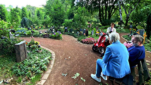 Bild: Eher an einen botanischen Garten erinnert der Blick auf dem Hauptfriedhof, den die Seniorengruppe von ihrem Stammplatz aus hat.