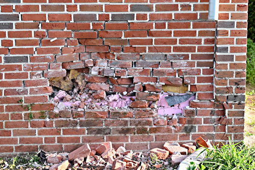 Bild: Schwere Schäden entstanden an der Hauswand des neuen Einfamilienhauses – Innen wie außen. Fotos: Bludau