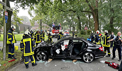 Dorsten. Mit schwerem Gerät befreite die Feuerwehr heute Morgen im Dorstener Ortsteil Rhade den Fahrer (50) eines Mercedes, der zuvor frontal gegen einen Baum geprallt war. Durch die Wucht des Aufpralls war das Fahrzeug auf die Straße zurückgeschleudert worden und blieb dann quer auf der Fahrbahn der Straße Am Stuvenberg stehen.