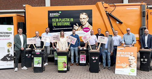 Bis zum 29. September ruft die Kampagne #wirfürbio zu Kontrollen der Biotonnen auf. Im Bild die Abfallmanager der Städte, in der Mitte Dagmar Dudler, die Abfallmanagerin des Kreises Recklinghausen.