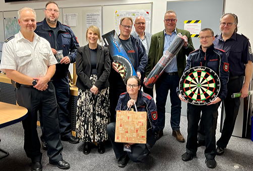 Zumindest blieb den Disponenten etwas Zeit, um mit dem Landrat über die aktuelle Situation in der Leitstelle oder die Pegelstände von Emscher und Lippe zu sprechen und gemeinsam die zurückliegenden Monate Revue passieren zu lassen. Auch die Kreisbrandmeister Robert Gurk und seine Stellvertreter Andreas Fischer und Andreas Schulte Sasse nutzten die Gelegenheit, sich beim Team der Leitstelle zu bedanken: „Wir haben in diesem Jahr einige größere Themen gehabt. Vor allem der Brand im Marienhospital in Marl ist ein Beispiel dafür, wie gut die Zusammenarbeit der Einsatzkräfte vor Ort mit der Leitstelle und der Kreiseinsatzleitung funktioniert. Dafür ganz herzlichen Dank.“