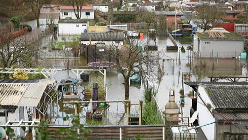 Dorsten. Der Name ist Programm! Jetzt hat das Hochwasser die Kleingartenanlage „Im Lippegrund“ erreicht. Parzellen und Gartenhäuschen stehen teilweise knietief im Wasser.