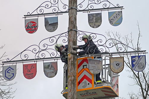 Bild: Erst kürzlich demontiert wurde der Wulfener Wappenbaum. Danach zeigten sich irreparable Schäden. Fotos: Bludau