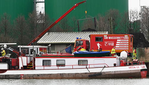 Es kam im Dorstener Industriehafen zu einem Einsatz von Rettungskräften inklusive der Taucherstafel der Feuerwehr Dorsten.