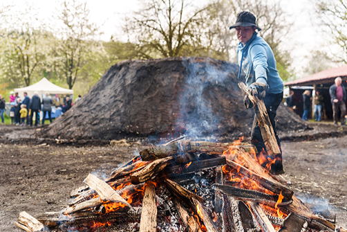 Während der kommenden zwei Wochen ist Andre Verheyen Tag und Nacht vor Ort, um den Meiler zu überwachen und die Luftzufuhr zu regeln. In dieser Zeit können Besucher ihm über die Schulter schauen und das alte Handwerk kennenlernen. Am Wochenende 4. und 5. Mai, 10 bis 17 Uhr, lockt der Mitmachmarkt mit Workshops und Aktionen zum Meilerplatz. RVR Ruhr Grün informiert über den Wald und seine Produkte. Verschiedene Gruppen von Freizeitreitern über Kräuterpädagogen bis hin zu Handwerkern laden zum Ausprobieren und Mitmachen ein.