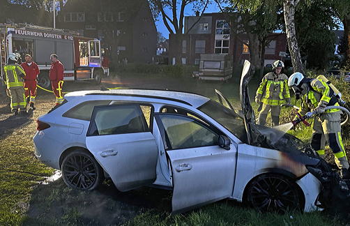 Dorsten. Die Feuerwehr musste gestern Abend zusammen mit Polizei und Rettungsdienst ins Lippetal in die Dorstener Altstadt ausrücken. Auf einem Parkplatz stand plötzlich ein Auto in Flammen. Gegen 21 Uhr riefen Anwohner im Lippetal den Notruf.