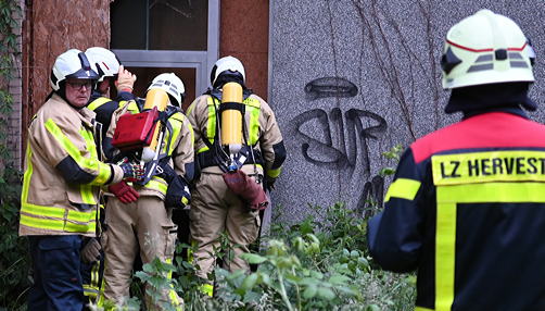 Die Einsatzkräfte des Löschzuges Hervest I mussten sich gewaltsam Zugang zu dem leerstehenden Gebäude verschaffen (Foto). Fenster und Eingänge sind unter anderem mit Brettern verschlossen und so gegen den Zutritt durch Unbefugte gesichert. Wie die Polizei vor Ort erklärte, stand im Inneren des Gebäudes, unter anderem im 1. Stock, Unrat in Flammen. Mit Atemschutzgeräten und einem Schlauch mit Wasser ausgerüstet konnte die Feuerwehr das Feuer schnell ausfindig machen und ablöschen.