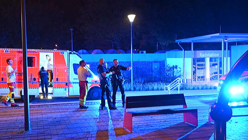Die Polizei wurde am späten Dienstagabend zum Johannes-Rau-Platz gerufen. Sie rückte mit einem größeren Aufgebot an – einschließlich Rettungskräfte und Notarzt. Nach bisherigen Erkenntnissen waren die am Streit beteiligten Personen gegen 23.50 Uhr zunächst verbal aneinander geraten. Kurz darauf soll ein Mann den 34-Jährigen mit einer zerbrochenen Glasflasche angegriffen haben. Danach flüchtete er – zusammen mit einem anderem Mann.