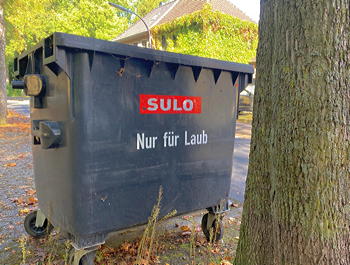 Die Container und Tonnen, die im Stadtgebiet aufgestellt werden, werden bei Bedarf geleert und sind ausschließlich für das Laub der städtischen Bäume vorgesehen. Private Gartenabfälle gehören in die braune Biotonne, Restmüll in die graue Tonne.