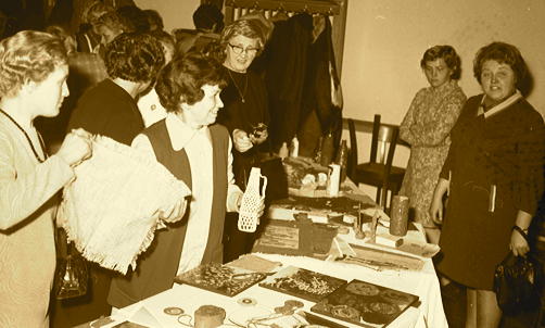 Bild:Adventsbazare (wie hier um 1960) erfreuten sich schon im 19. Jahrhundert großer Beliebtheit. Dort wurde und wird Selbstgefertigtes für einen guten Zweck verkauft. Foto: LWL/Adolf Risse