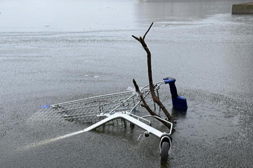 Gerade Kinder und Jugendliche wollen die Belastbarkeit des Eises testen und schieben oder werfen dafür teilweise kuriose Gegenstände aufs Eis. So finden sich derzeit ausgediente Mülleimer oder sogar Einkaufswagen auf dem, bzw im Wasser.
