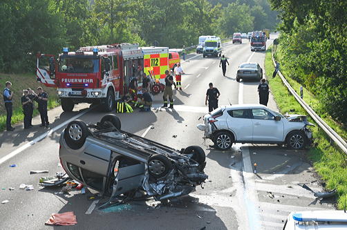 Mehrere Rettungshubschrauber und Krankenwagen brachten die Verletzten in Krankenhäuser. Nach bisherigen Informationen stießen beide Autos um 17.19 Uhr frontal zusammen. Der genaue Unfallhergang ist aktuell noch unklar und Gegenstand der weiteren Ermittlungen.