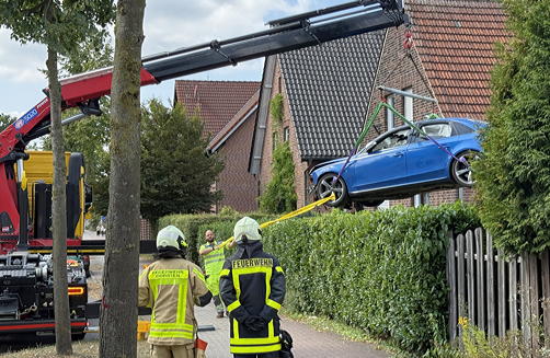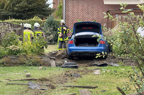 Am Mittwochmittag (20. August) kam es auf der B58 im Dorstener Ortsteil Wulfen zu diesem ungewöhnlichen Unfall. Ein 32-jähriger Fahrer aus Dorsten befuhr die Dülmener Straße (B58) von Barkenberg in Richtung Hervester Straße. In Höhe eines Discounters im Bereich der Fritz-Eggeling-Allee verlor der Fahrer die Kontrolle über seinen Audi. Das Fahrzeug überfuhr einen Geh- und Radweg, durchbrach zwei Zäune und kam schließlich an einer kleinen Mauer in einem privaten Garten zum Stehen.